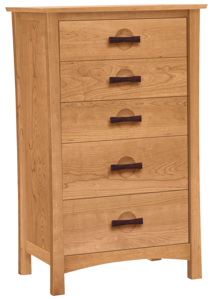 A fusion of Arts & Crafts and Asian design, the Berkeley Bedroom is both sophisticated and practical. Crafted in solid cherry hardwood with American black walnut accents, the collection features a variety of cases and a low footboard bed designed for use with a mattress only.Read More